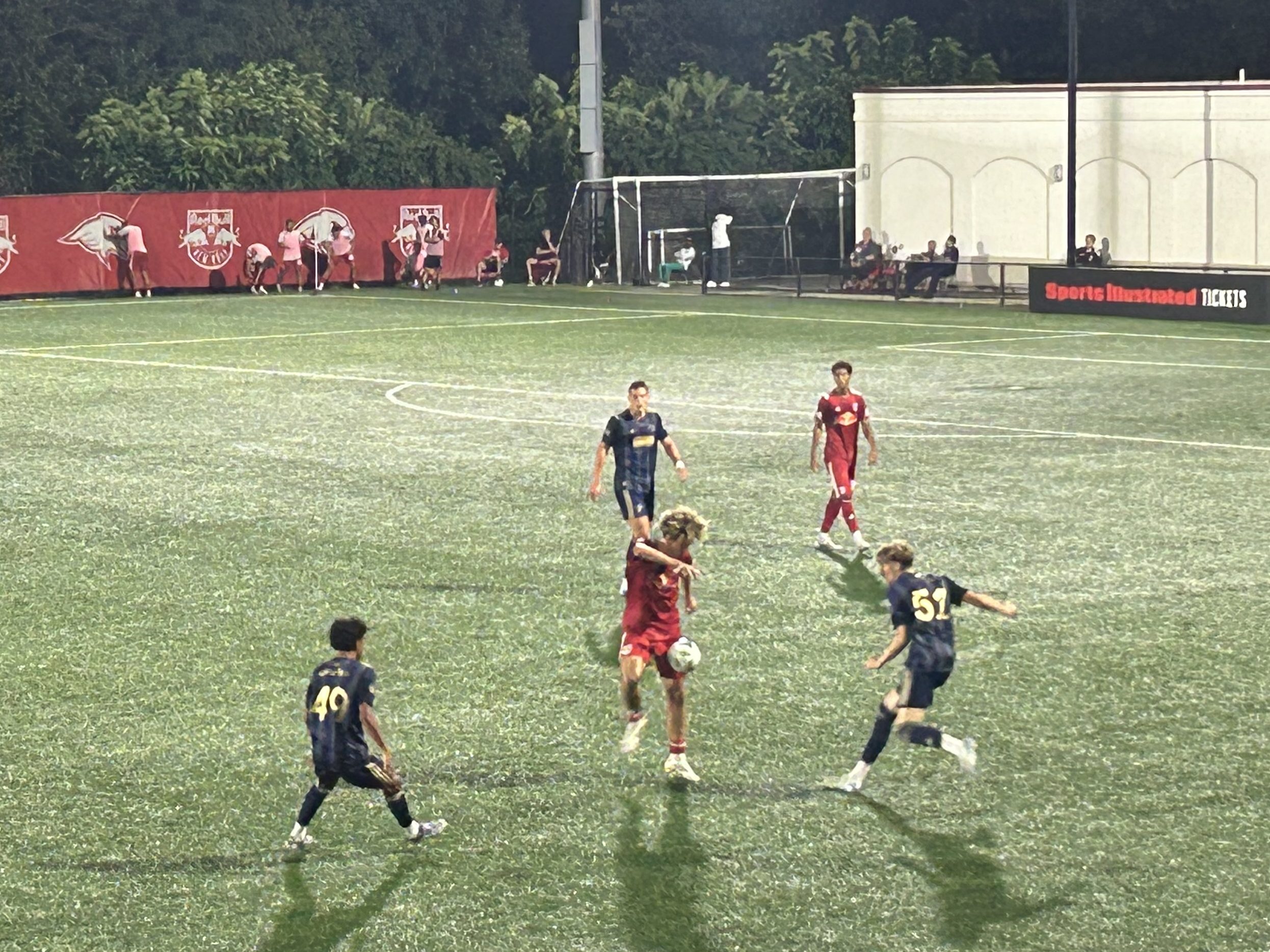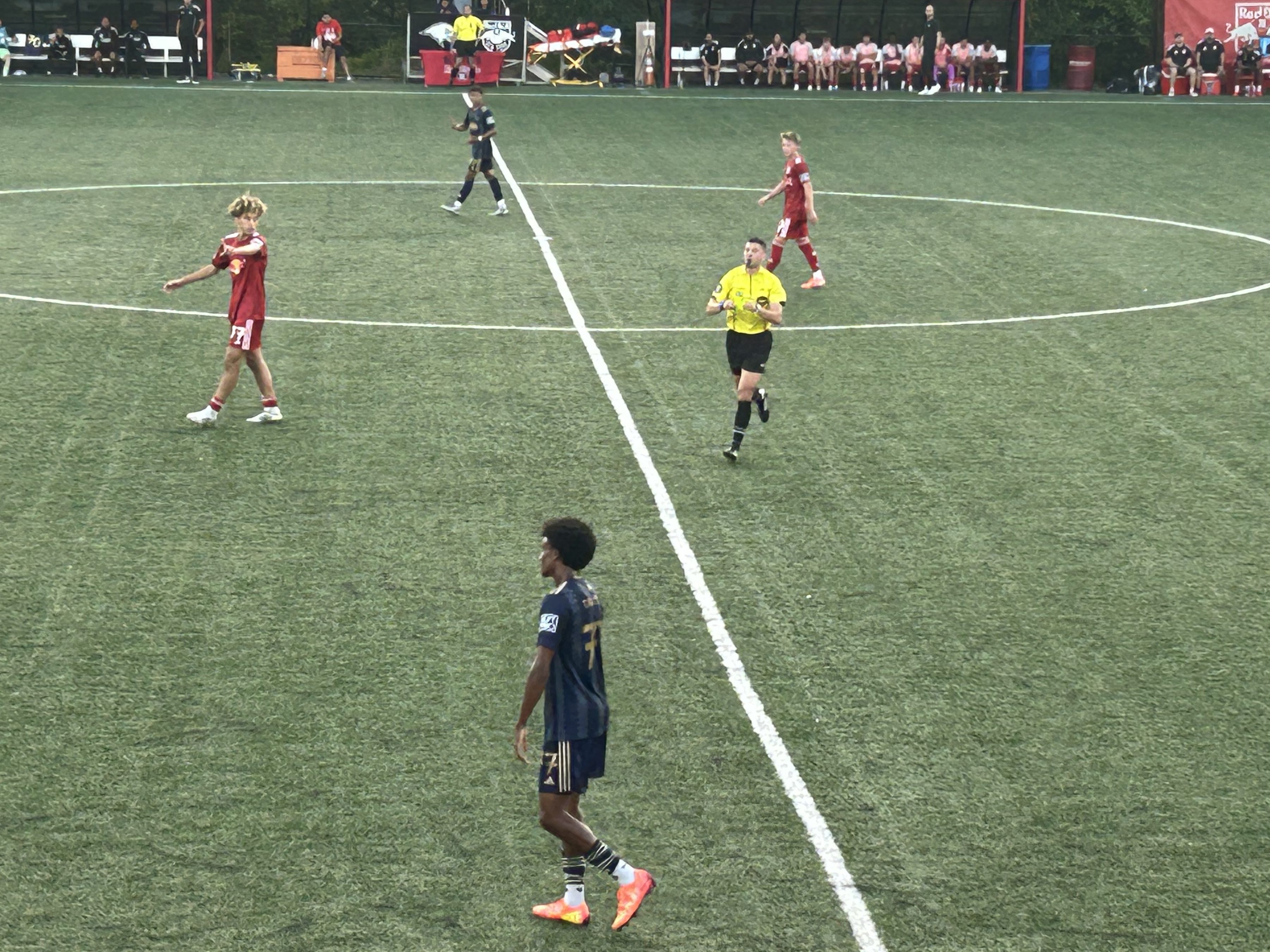 The game was physical from the get-go. In the first minute of play, Isaiah LeFlore was shown a yellow card for a foul just outside the box, resulting in a Red Bulls free kick that was sailed over the crossbar. Union II would promptly go on the attack and earn a couple corners early that led to some headers by Rafael Uzcátegui that were blocked and went wide, respectively.